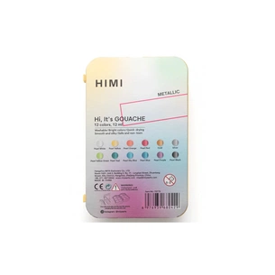 Гуашеві фарби HIMI Twin Cup 12 кольорів по 12мл, Металік, жовтий пластик, пенал (6976939680429)