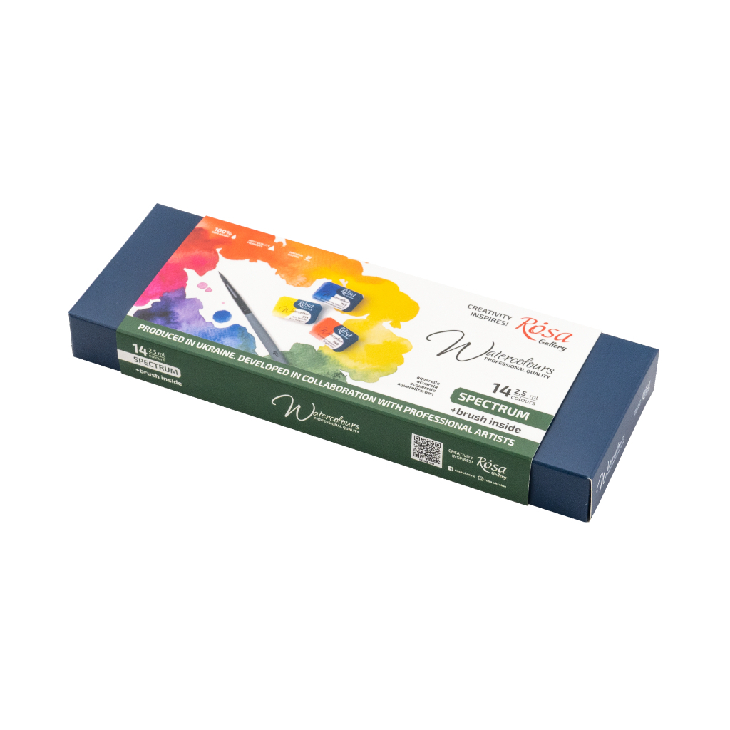 Набір професійних художніх акварельних фарб SPECTRUM поєднує у собі традиційні кольори для техніки акварель. більшість кольорів гами - однопігментні, що дає можливість утворювати чисті віддінки при зммішуванні.