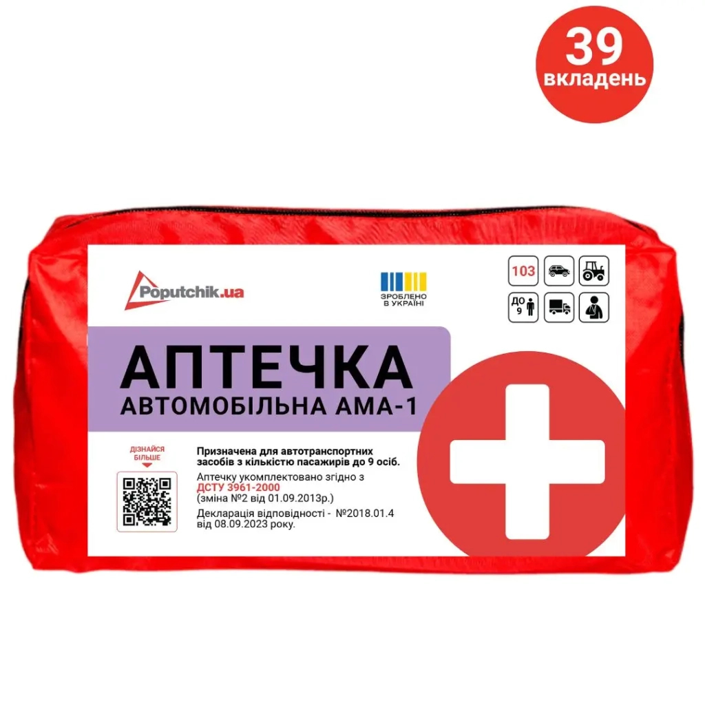 Аптечка медична автомобільна АМА-1 Poputchik розроблена для оснащення легкових автомобілів із кількістю пасажирів до 9 осіб (включаючи водія), вантажних транспортних засобів та колісних тракторів. Вона забезпечує можливість надання домедичної допомоги постраждалим у разі дорожньо-транспортних пригод, а також підходить для використання у повсякденному режимі експлуатації транспортного засобу.