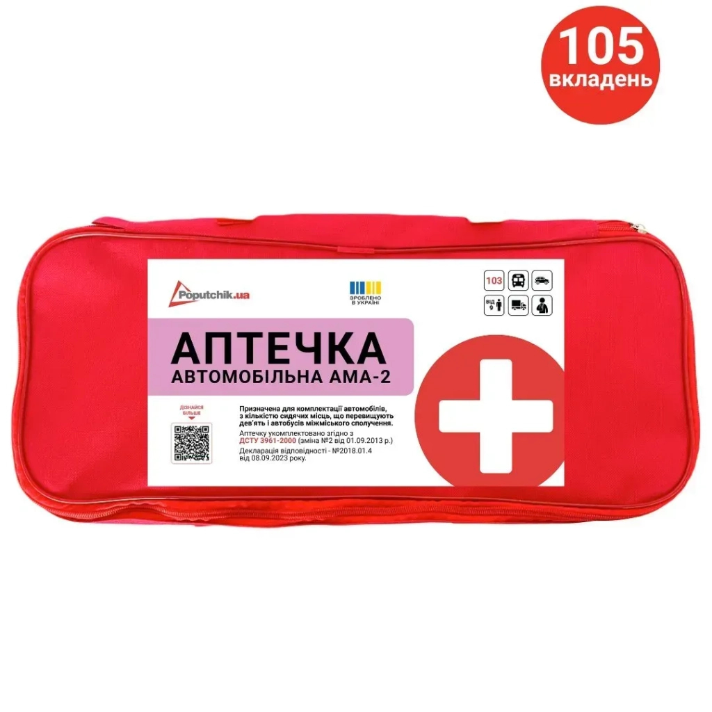 Аптечка медична автомобільна АМА-2 згідно ДСТУ 3961-2000 (зміна №2) призначена для укомплектування автомобілів, мікроавтобусів, автобусів міжміського транспорту, з кількістю понад 9 осіб.