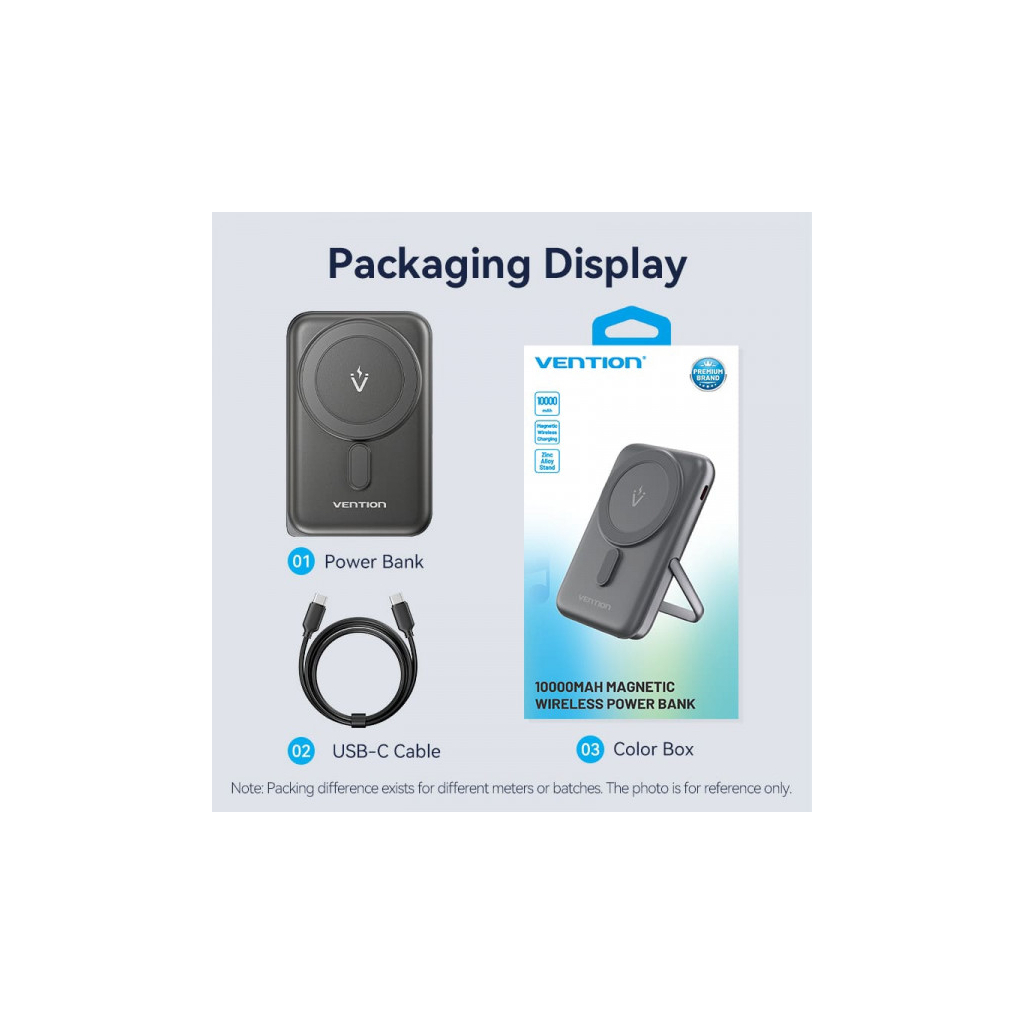 Батарея універсальна VENTION Magnetic Wireless 10000mAh 20W PD USB-C In/Out, QI-15W Black (FHNB0)