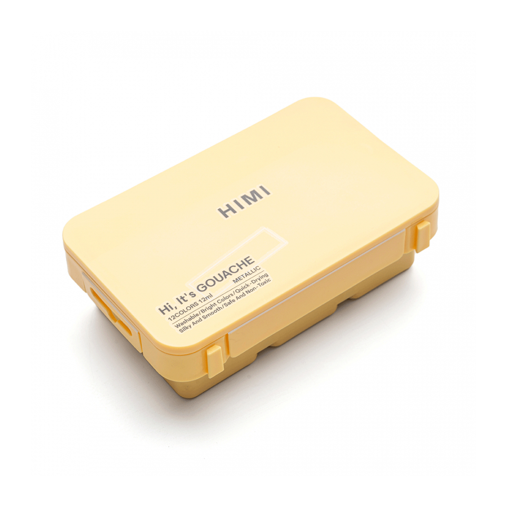 Гуашеві фарби HIMI Twin Cup 12 кольорів по 12мл, Металік, жовтий пластик, пенал (6976939680429)