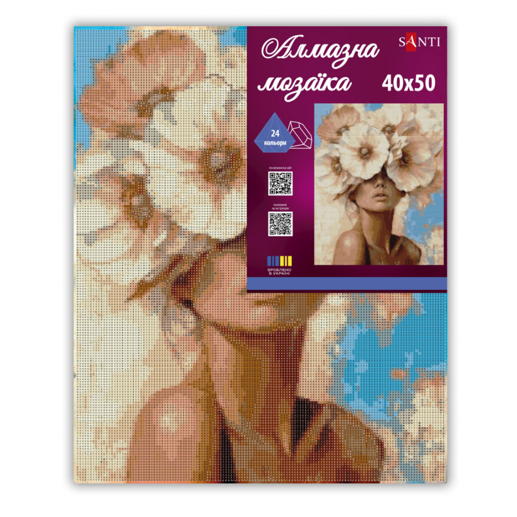 Пориньте в атмосферу натхнення та творчості з алмазною мозаїкоюДівчина та ніжна квітка ТМ SANTI!