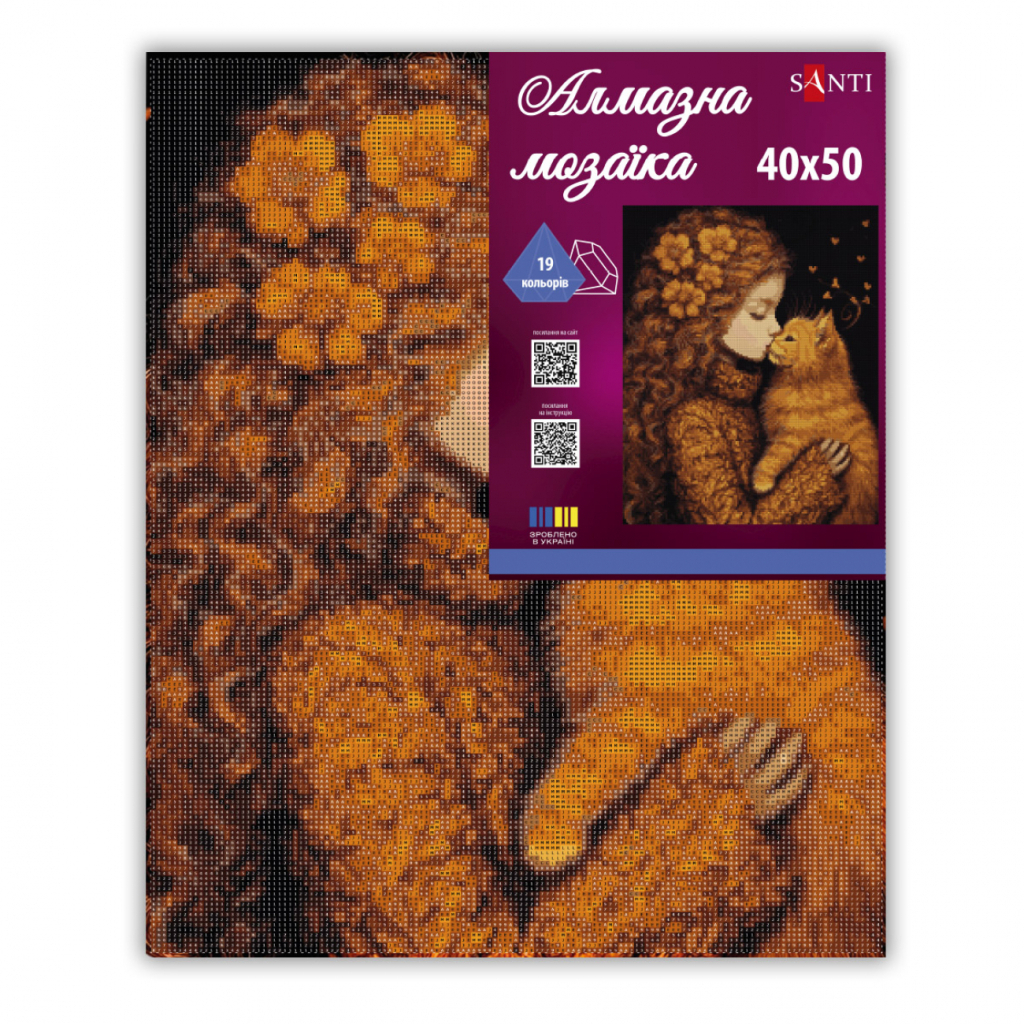Пориньте в атмосферу натхнення та творчості з алмазною мозаїкою Дівчинка та кошеня ТМ SANTI! Алмазна мозаїка – творчість, яка не вимагає спеціальних навичок і досвіду, проста і цікава техніка, яку легко освоїть кожен. Процес викладання страз діє як арт-терапія: допомагає розслабитися, зняти стрес, даруючи задоволення від кожного відблиску та переливу.