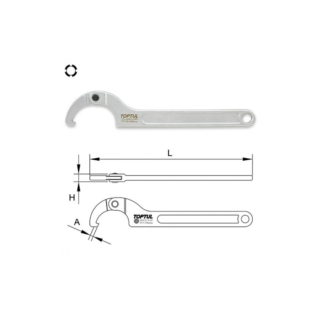 Ключ Toptul для круглих шліцьових гайок шарнірний 35-50мм (AEEX1A50)