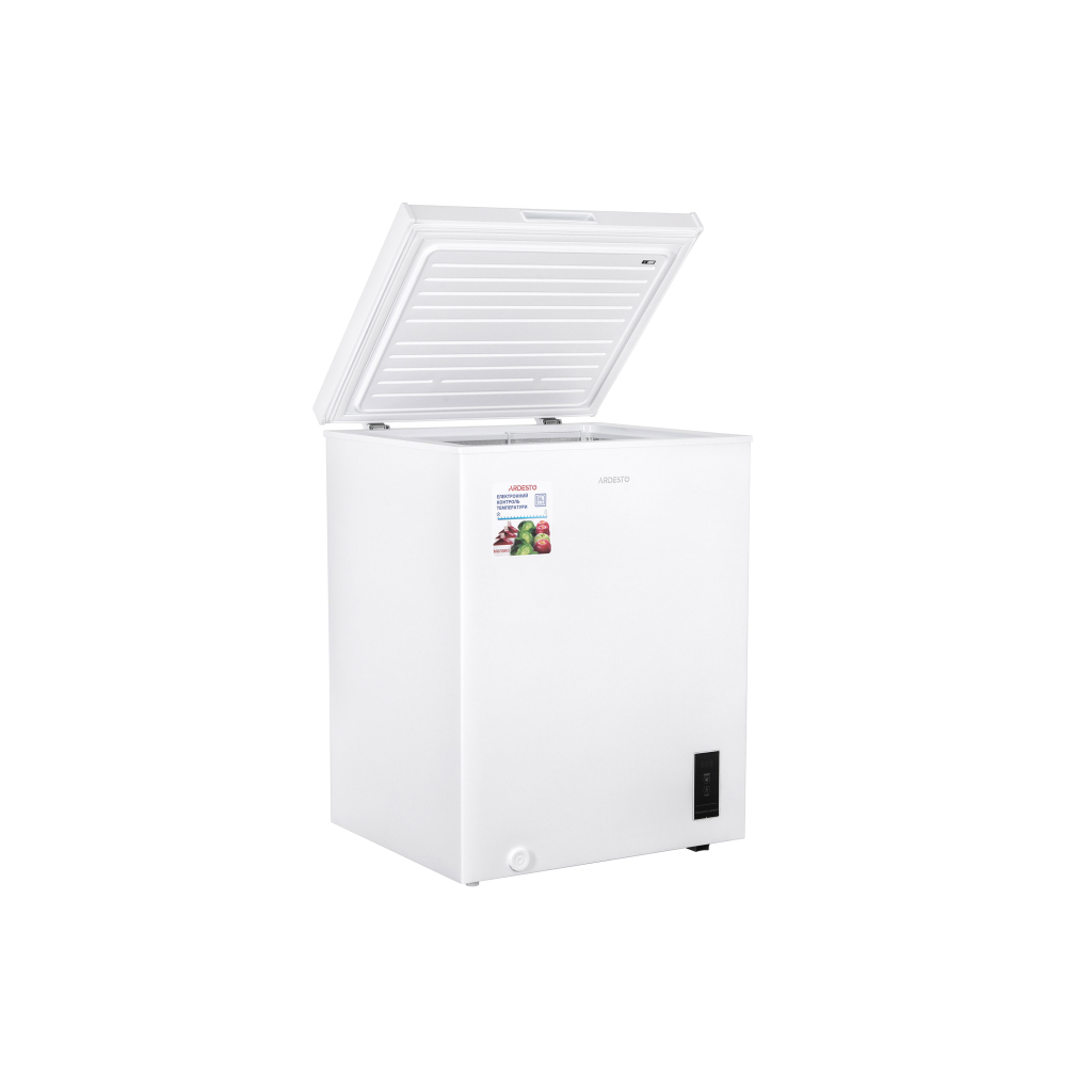 Морозильна скриня білого кольору з електронним керуванням та підтримкою роботи в режимі холодильника. Енергозбереження відповідає класу А+, а корисний об’єм становить 142 л. Час автономного живлення без споживання енергії – 15 год.