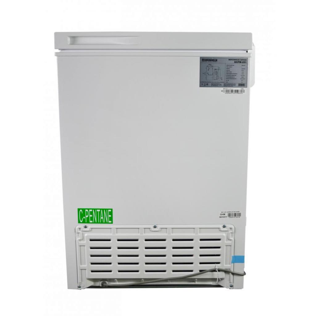 Морозильна скриня Grunhelm GCFW-251 - універсальна горизонтальна морозильна камера, прекрасне рішення для приватних будинків, дач, магазинів, забезпечує тривале зберігання і заморожування продуктів харчування. Модель Grunhelm GCFW-251 отримала великий обсяг камери в 251 л і потужність заморозки 13 кг / 24г, тепер Ви з легкістю можете зберігати м'ясо, овочі, фрукти, готові страви в великому обсязі у себе вдома. А в разі відключення енергоспоживання, морозильна скриня Grunhelm GCFW-251 може зберігати холод до 35 годин. Також варто відзначити крапельну систему заморозки, знімний кошик, низьку витрату електроенергії (клас А +), надійність і компактність. Всі вище перераховані якості роблять покупку даної морозильної камери розумним і економічним рішенням.