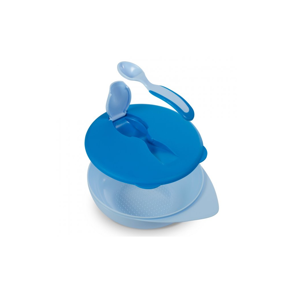 Набір дитячого посуду Baboo тарілочка глибока з кришкою та ложечкою синя (90594)