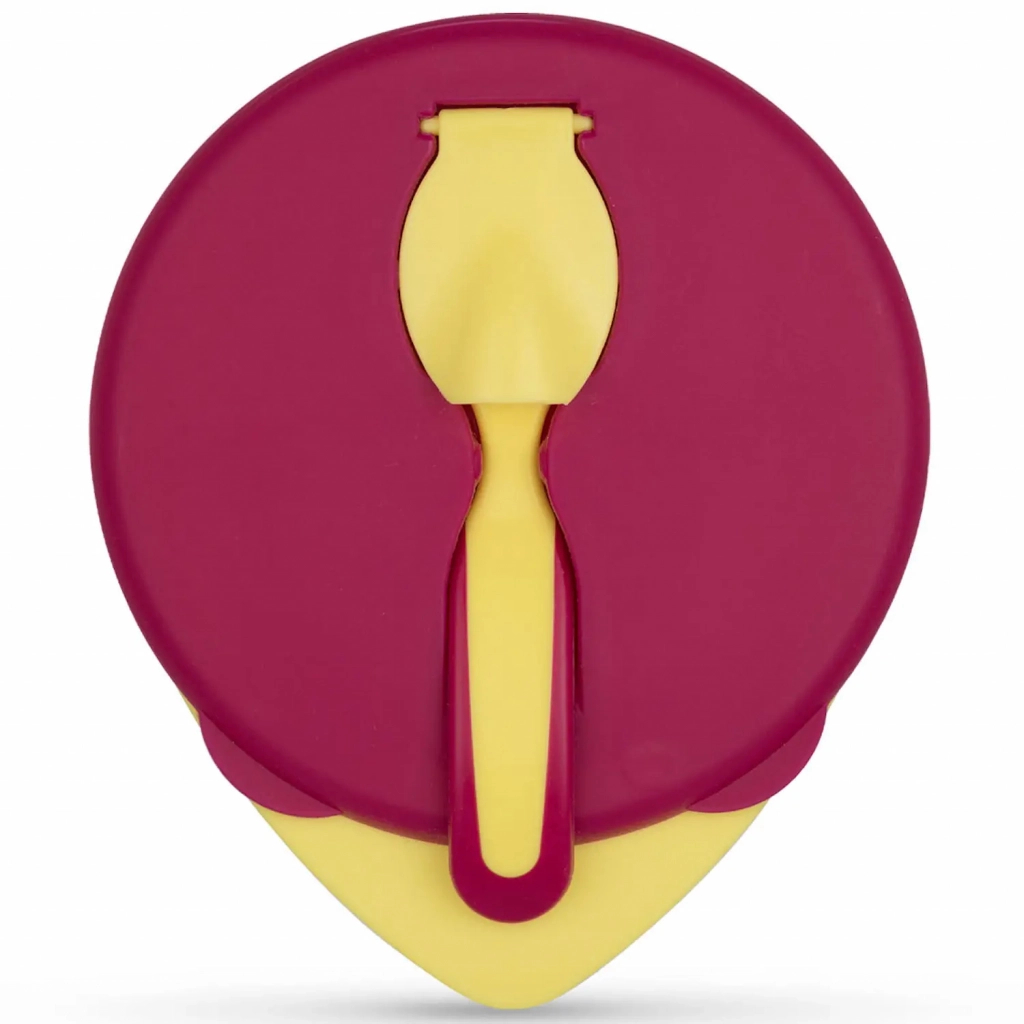 • Спеціальна виїмка із замочком надійно зміцнює ложку до основи кришки, тим самим зберігаючи її гігієнічність та чистоту.