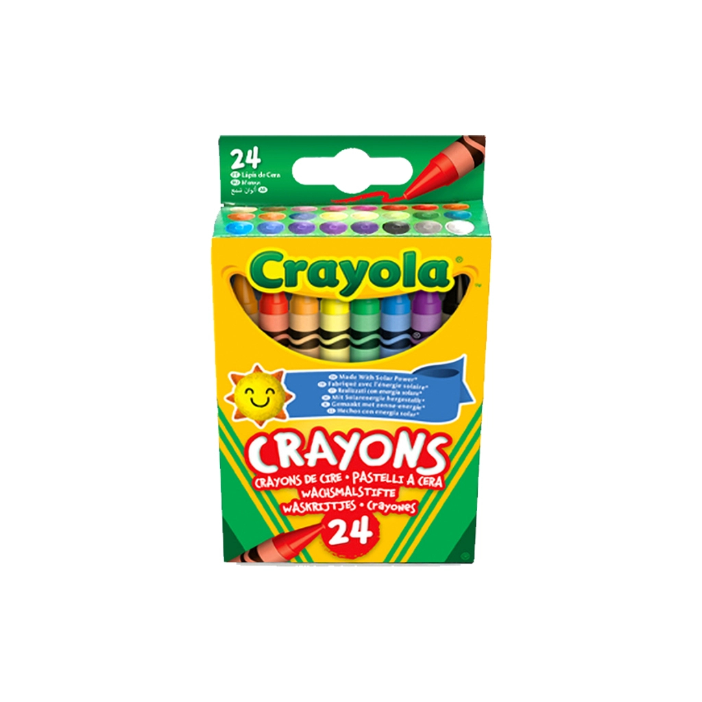 24 високоякісних воскових кольорових олівця, які надають гладкий колір, лягають без нерівностей і смуг.