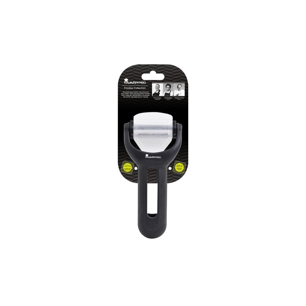 Горизонтальна овочечистка MasterPro з колекції Foodies — компактний і ефективний інструмент для швидкого очищення овочів. Виготовлена з нержавіючої сталі, вона має довжину 15,5 см. Завдяки чорному та металічному дизайну, ця овочечистка не тільки функціональна, але й стильно виглядає на вашій кухні.
