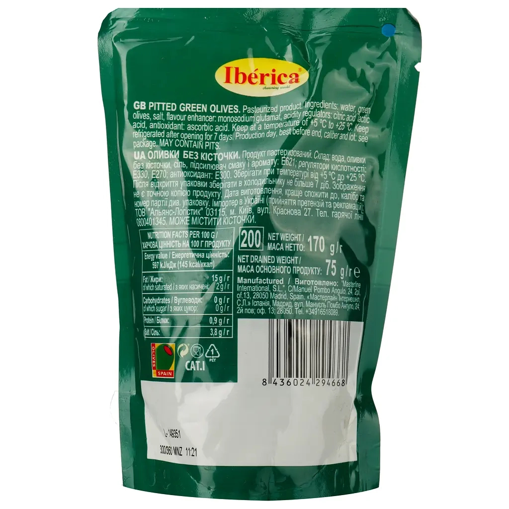 Овочева консервація Iberica Оливки зелені без кісточки в пакеті 170 г (8436024294668)