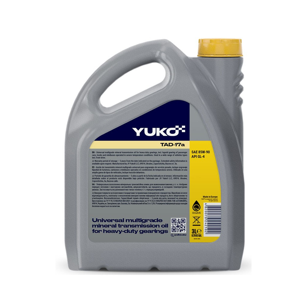 Трансмісійна олива Yuko ТАД-17а GL-4, SAE 85W-90 3л (4820070242102)