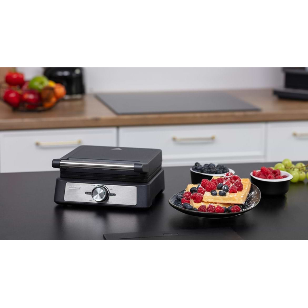 Ви любитель пишних і хрумких вафель? Відкрийте для себе новинку від MPM – вафельницю MGO-41/C з унікальними глибокими пластинами та насолоджуйтесь улюбленими смаками щодня. Оригінальний дизайн та класичний чорний колір зроблять прилад прикрасою вашої кухні.