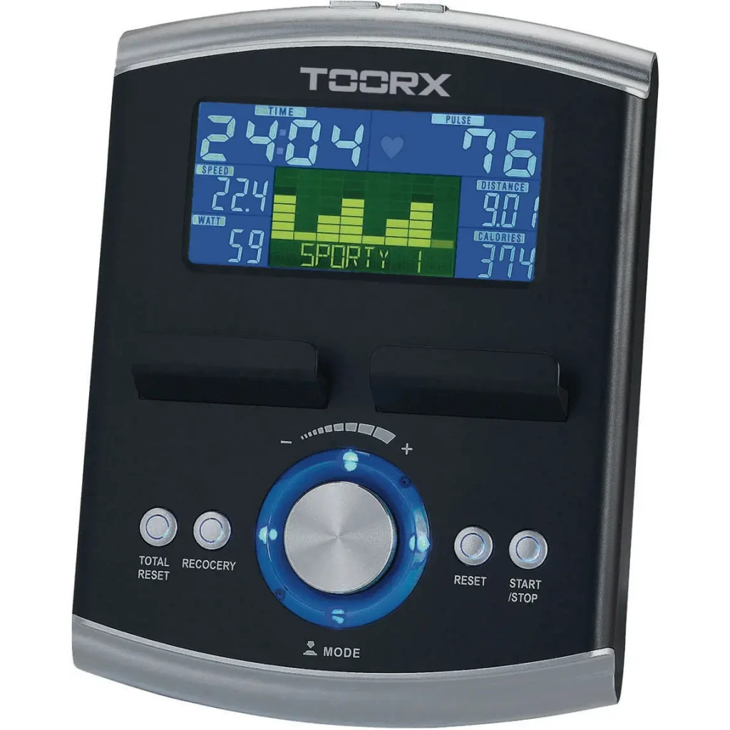 Велоергометр Toorx Upright Bike BRX 100 ERGO (BRX-100ERGO) із преміальної лінійки Chrono Line від італійського виробника Garlando S.p.A. призначений для комфортного кардіотренування в домашніх умовах. Тренажер має 32 рівня навантаження, що регулюються за допомогою сучасного комп'ютера. 14-кілограмовий маховик створює чудову плавність ходу, знижуючи навантаження на суглоби та мінімізуючи ризик отримання травми в процесі занять. Велоергометр розрахований на вагу до 150 кг і підійде для користувачів зростом до 2 м. Вбудований приймач для бездротового датчика вимірювання пульсу буде доречним під час тренування по одній із чотирьох пульсозалежних програм. Консоль тренажера має підставку для смартфона/планшета та підтримує Bluetooth для інтеграції з популярними програмами iConsole+ Training, Kinomap і Zwift, які перетворять монотонне тренування в захоплюючий процес. Сидіння велоергометра регулюється по висоті та в горизонтальній площині для індивідуального налаштування, а транспортувальні ролики в передній частині тренажера дозволяють переміщати його по кімнаті.
