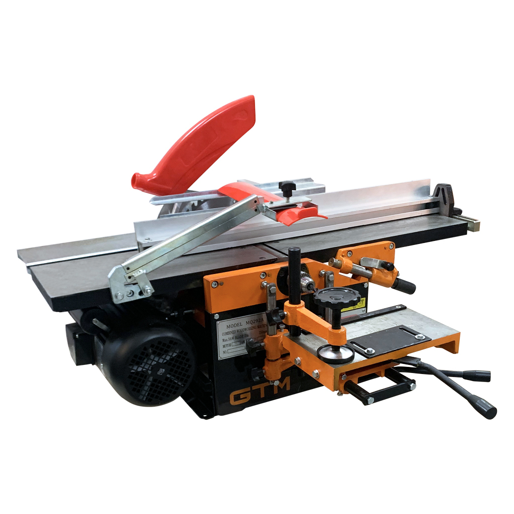 GTM MQ292A - професійне обладнання для обробки деревини. Комбінований верстат MQ292A призначається для фугування, розпилу дощок, свердління дерев'яних заготовок і інших робіт по дереву. У верстаті присутня можливість гнучкого налаштування конструкції під конкретну задачу, що значно спрощує роботу користувача і виключає необхідність покупки декількох окремих верстатів. Робочі частини наводяться в рух однофазним асинхронним двигуном потужністю 1500 Вт. Завдяки мідній обмотці двигун відрізняється надійністю і витримує значні навантаження.