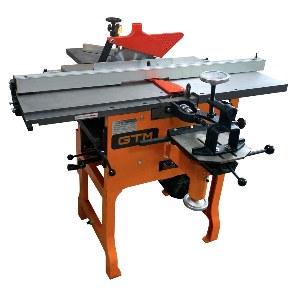 GTM MQ393A - професійне обладнання для обробки деревини. Комбінований верстат MQ393A призначається для фугування, рейсмусування, розпилу дощок, свердління дерев'яних заготовок, вирізання пазів і інших робіт по дереву. У верстаті є можливість гнучкого налаштування конструкції під конкретну задачу, що значно спрощує роботу користувача і виключає необхідність покупки декількох окремих верстатів. Робочі частини наводяться в рух однофазним асинхронним двигуном потужністю 2200 Вт. Завдяки мідній обмотці двигун відрізняється надійністю і витримує значні навантаження.