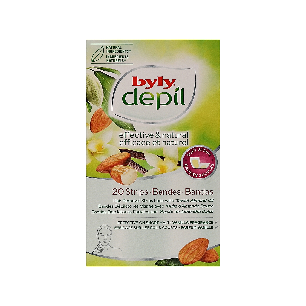 Воскові смужки Byly Для депіляції шкіри обличчя з Мигдалем та Ваніллю 20 шт (8411104043374)