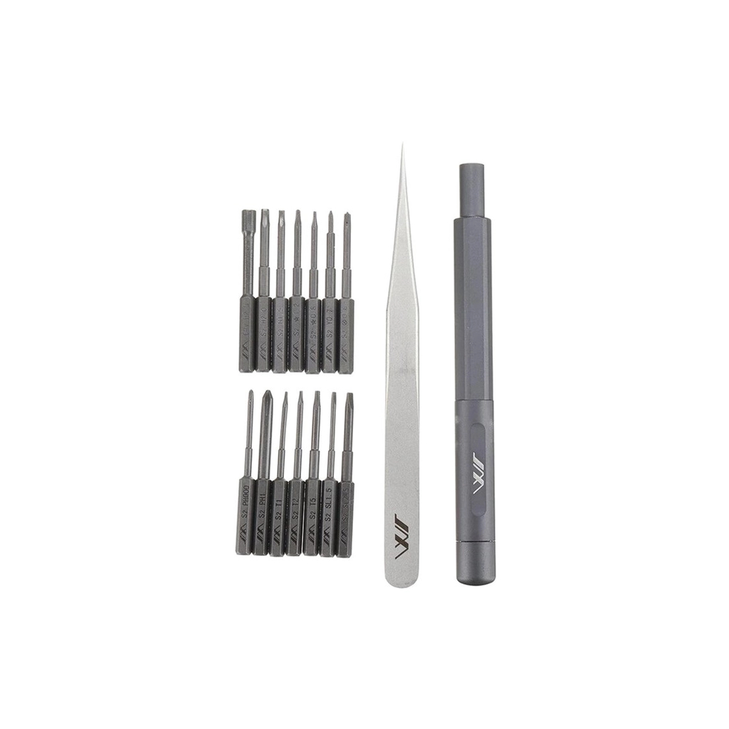 Крім біт, в комплект входять ручка викрутки, пінцет з нержавіючої сталі, ящик для зберігання гвинтів та алюмінієва трубка для зберігання насадок. Також передбачено сумку для перенесення, яка спрощує транспортування та зберігання інструменту.