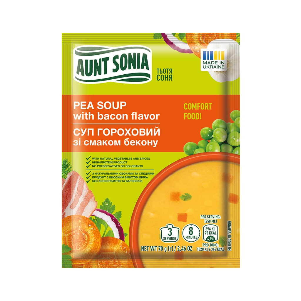 Їжа швидкого приготування Тьотя Соня Суп гороховий з беконом 70 г (4820015101334)