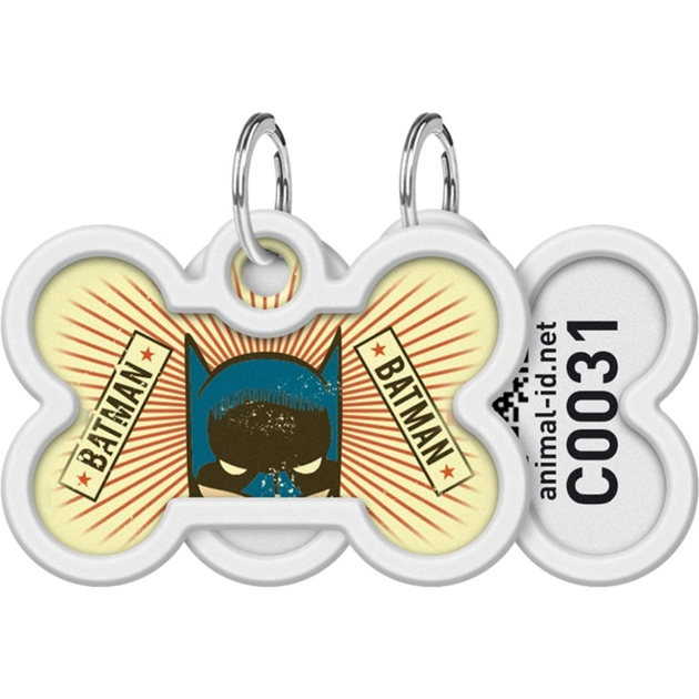 Адресник для животных WAUDOG Smart ID с QR паспортом "Бэтмен винтаж", кость 40х28 мм (0640-1008)