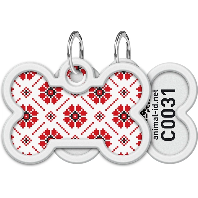 Адресник для животных WAUDOG Smart ID с QR паспортом "Вышиванка", кость 40х28 мм (231-4033)