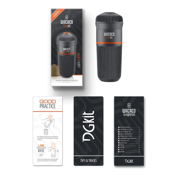 Обратите внимание: DG Kit совместим только с кофеваркой Wacaco Nanopresso. Капсулы и сама кофеварка в комплект не входят.