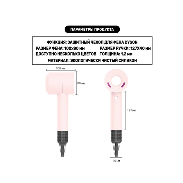 Тонкий силикон 1.2 мм не увеличивает инструмент в объеме, его текстура позволяет надежно держать в руке фен и не скользить, а стильные цвета чехлов можно менять под настроение.
