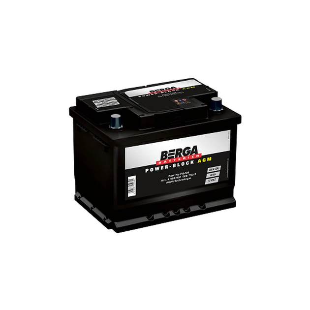 Аккумулятор автомобильный Berga Power Block AGM 60Ah Ев (-/+) (680EN) (5609010687502)