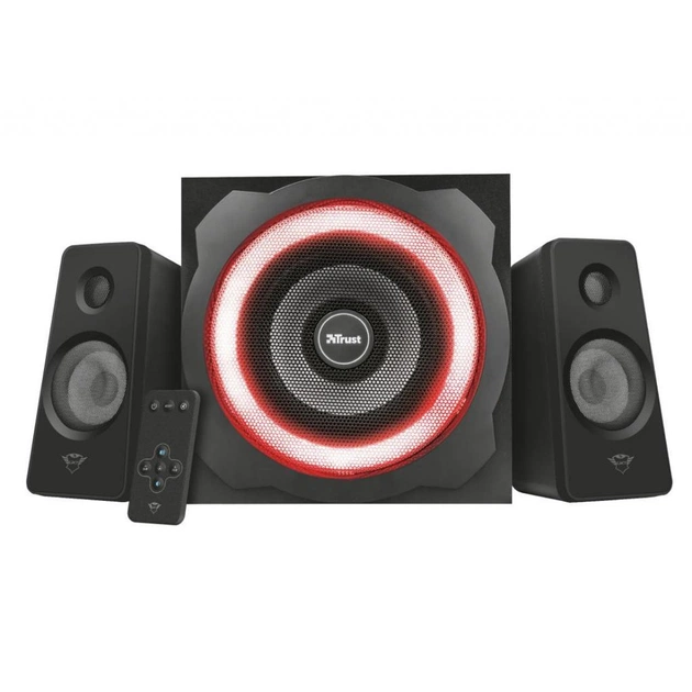 Акустическая система Trust GXT 629 Tytan RGB Illuminated (22944) приносит в ваше пространство не только качественное звучание, но и эстетическое удовольствие благодаря дизайну. Эта система создана специально для тех, кто ценит мощный звук, стильный вид и функциональность, сочетая в себе все ключевые преимущества современной акустической системы.