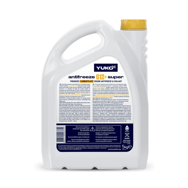 Выбирая Антифриз Yuko -40°C Super G12+ Желтый, вы предоставляете вашему двигателю безупречный уровень защиты и продлеваете срок его эксплуатации, независимо от климатических условий и сезона.