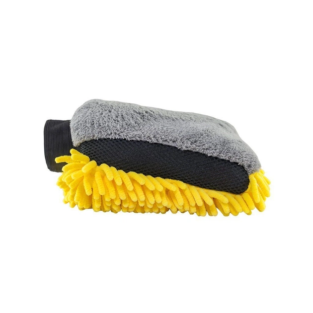 Перчатка от Chemical Guys предназначена для любителей и профессионалов, много времени проводящих у своих автомобилей. Уникальный дизайн моющей перчатки сочетает в себе три отличных инструмента для мойки автомобилей в одном удобном устройстве. Плюшевая лапша из микрофибры идеально подходит для нежного удаления загрязнений с любых поверхностей. Теперь переверните рукавицу, чтобы аккуратно удалить грязь из лакокрасочного покрытия, стекла, металла, пластиковых поверхностей с помощью коротких волокон микрофибры. Часто замечаете следы от насекомых, птичий помет или сок растений на поверхностях? Поверните перчатку Three-Way Mitt на бок и аккуратно вычистите эти загрязнения с помощью мягкого сетчатого материала. В мягкой варежке использован водонепроницаемый барьер, защищающий кожу рук от скользкой и мыльной воды, а плотная эластичная манжета надежно удерживает рукавицу на руке. Перчатка изготовлена из мягкой премиум микрофибры, которая гарантирует идеальную очистку без царапин и повреждений. Трехсторонняя перчатка для мытья может стираться в стиральной машине. Трехсторонняя варежка для мытья очищает любые поверхности автомобиля во время любой мойки. Поскольку более 95% царапин образуются из-за неправильного подхода к мойке, и была придумана варежка Three-Way Car Wash Mitt, с премиум ультра мягкой микрофиброй. Супер мягкая ткань бережно удаляет грязь и мусор, не царапая даже самые чувствительные поверхности. Микроволокно в виде лапши, яркого желтого цвета надежно удерживает грязь до тех пор, пока вы полностью не промоете ее в воде. Регулярно проверяйте желтое волокно на предмет наличия в нем грязи, прежде чем возвращаться к мойке. Тщательно отмывают прочные пластиковые бамперы, детали отделки окон, поверхности из полированного металла, стекла, с помощью прочной серой стороны варежки, если вам нужна более агрессивная очистка. Мягко очищайте птичий помет, следы насекомых, сок деревьев и растений, дорожную смолу с помощью боковой стороны варежки, изготовленной из сетчатого материала. Трехсторонняя варежка от Chemical Guys изготовлена из двух типов ультратонкого микроволокна и супер мягкого спонжа. Эта тонкая варежка удерживает воды и пены в пять раз больше своего веса, для идеального смазывания очищаемых поверхностей. Эта особенность позволяет удалять загрязнения без образования царапин на пластике и чувствительной автомобильной краске.