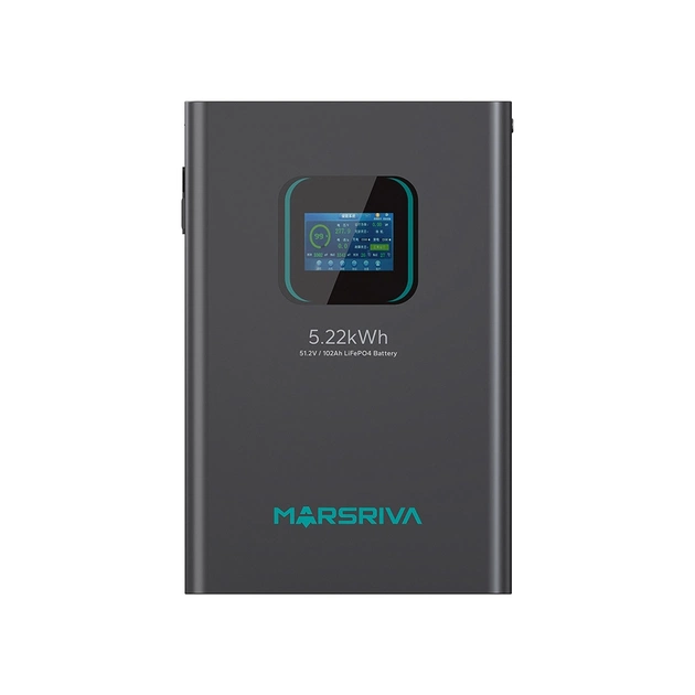 Для качественной работы аккумулятор оснащен BMS системой, которая способна защитить от перепадов напряжения, перегрева или короткого замыкания. Батарея MARSRIVA имеет удобный сенсорный экран, который существенно упрощает управление устройством. Данная модель предусматривает как напольную, так и настенную установку.