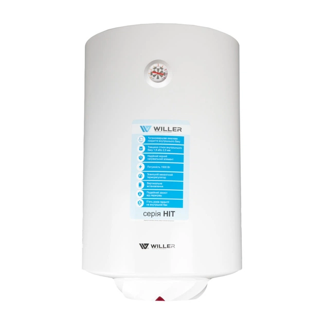 Бойлер WILLER HIT - це чудовий вибір для забезпечення вашого будинку гарячою водою. Він оснащений мідним занурювальним (мокрим) нагрівальним елементом потужністю 1,5 кВт, який швидко та економно нагріває воду. Особливості бойлера WILLER HIT:
