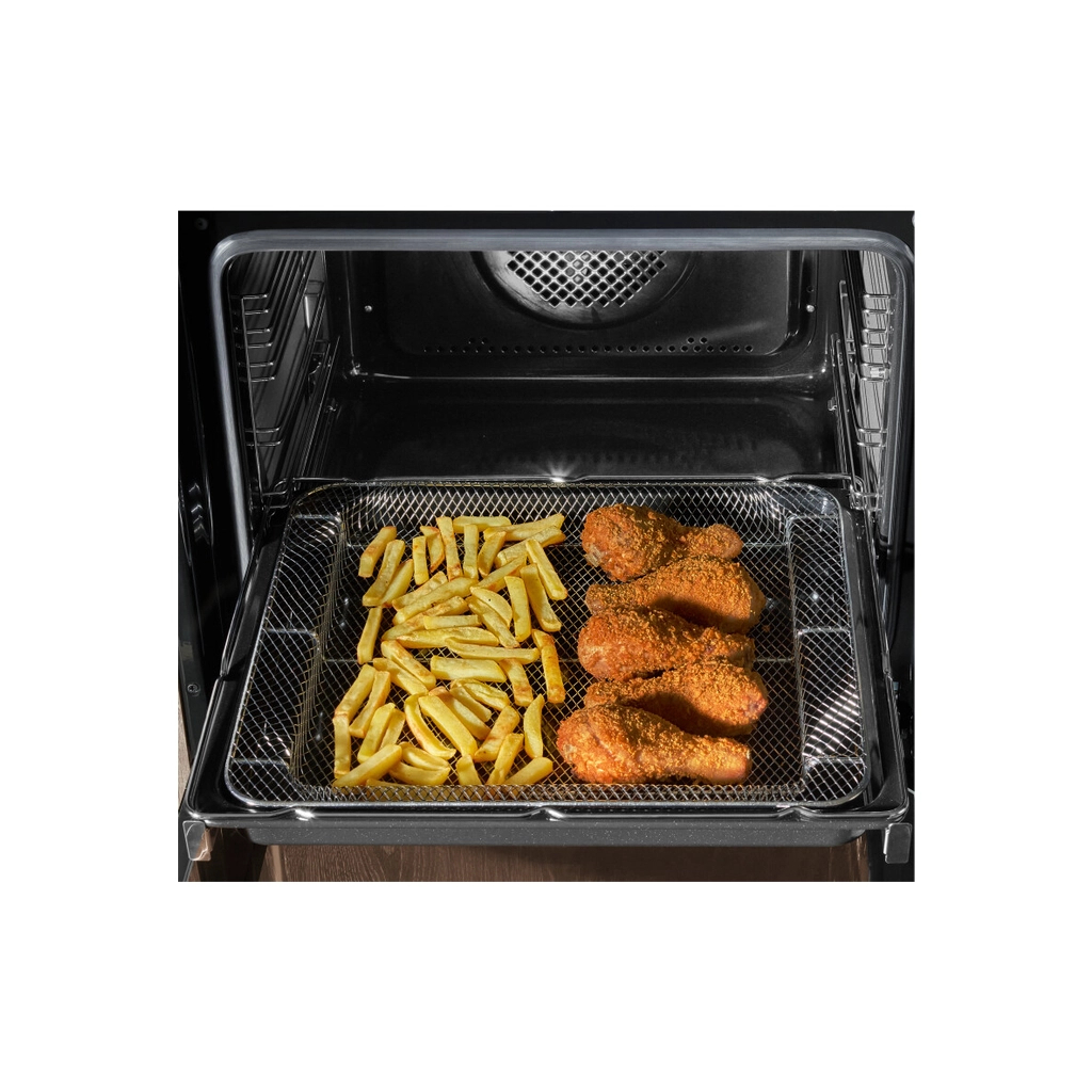 Хрусткі страви без використання олії та жиру? Смажена їжа одночасно легка та корисна? Це можливо завдяки спеціальному сітчастому деку AirFry з антипригарним покриттям, яке забезпечує рівномірну циркуляцію гарячого повітря, ідеальну хрустку скоринку ззовні та соковитість всередині. Тепер ви можете насолоджуватися смачними картоплею фрі, овочевими чіпсами або куркою в клярі у зручному для вас варіанті. Без необхідності додавати олію або перевертати страву під час смаження та з економією часу, адже страви випікаються за менший час.