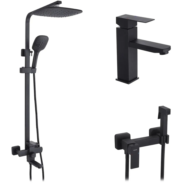 Комплексный набор сантехники 3 в 1 в современном стильном дизайне Edelstahl Kubus – готовое решение для ванной комнаты, объединяющее душевую систему, умывальник и гигиенический душ в одном комплекте.