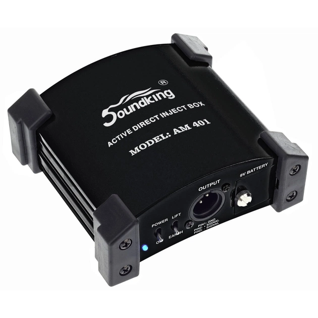 Активный Direct Box AM401 преобразует небалансный сигнал музыкальных инструментов в балансный, идеально подходящий для использования с микшерными пультами или микрофонными предусилителями. Надежный металлический корпус с прорезиненными уголками делают AM401 превосходным выбором для использования на сцене.