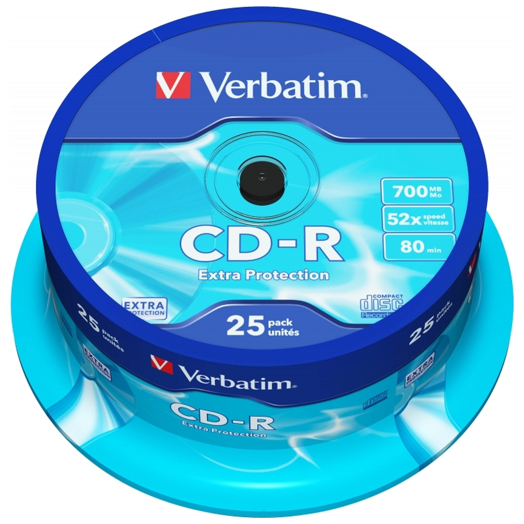 CD-R Verbatim 700Mb 52x Cake box 25шт Extra (43432) - это носители производства компании Verbatim, которые отличаются высокой точностью механических параметров, поэтому для записи данных можно использовать различные модели приводов. Эти диски демонстрируют высокий уровень совместимости с приводами, работающими на больших скоростях.