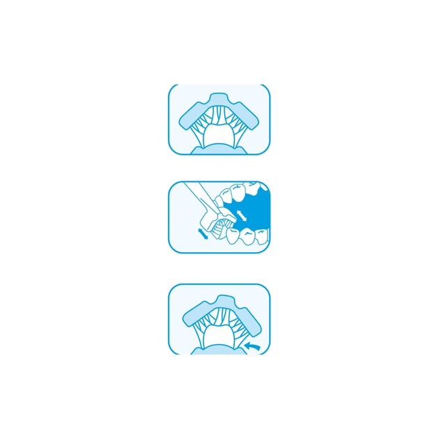 Направляет сама себя вдоль зубного ряда, так как щетинки охватывают зуб со всех сторон