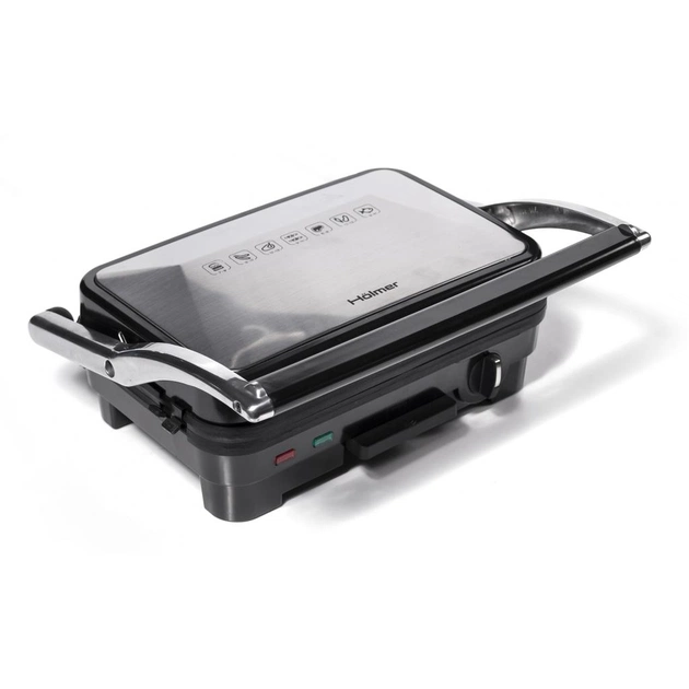 С электрогрилем Hölmer HCG-18P легко готовить мясо, рыбу, птицу или овощи, а также разогревать пиццу, сосиски, пироги или делать бутерброды с хрустящей корочкой. При использовании контактного гриля продукты готовятся быстро, так как они контактируют с плитами одновременно с двух сторон, сохраняя полезные свойства продуктов. Просто подберите оптимальную температуру для идеальной прожарки и выберите одно из двух рабочих положений прибора (угол открытия конструкции - 105°/180°).