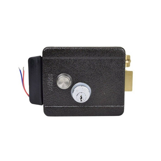 Принцип работы электромеханического замка следующий: это запирающее устройство с механическим ригелем, открытие которого производится с помощью подачи электрического питания или механическим способом – с использованием ключа либо кнопки. Открыть замок можно снаружи с помощью ключа; изнутри - с помощью механической кнопки; дистанционно – импульсом напряжения 12V.