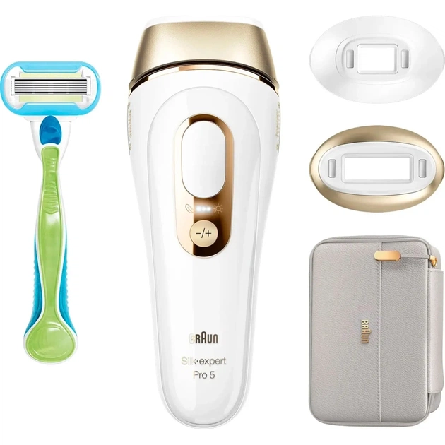 Серия: Silk·expert Pro 5. Система: IPL (фотоэпиляция). Совместимость с типами кожи: 1-5. Область воздействия: 3 кв. см. Срок службы: 400 000 вспышек. 10 уровней интенсивности. Датчик SensoAdapt. Функция GentleMode. Скользящий режим. Частота вспышек: 1-2 сек. Питание: от сети. Косметичка, головка для точной фотоэпиляции и бритва Venus Extra Smooth в комплекте.
