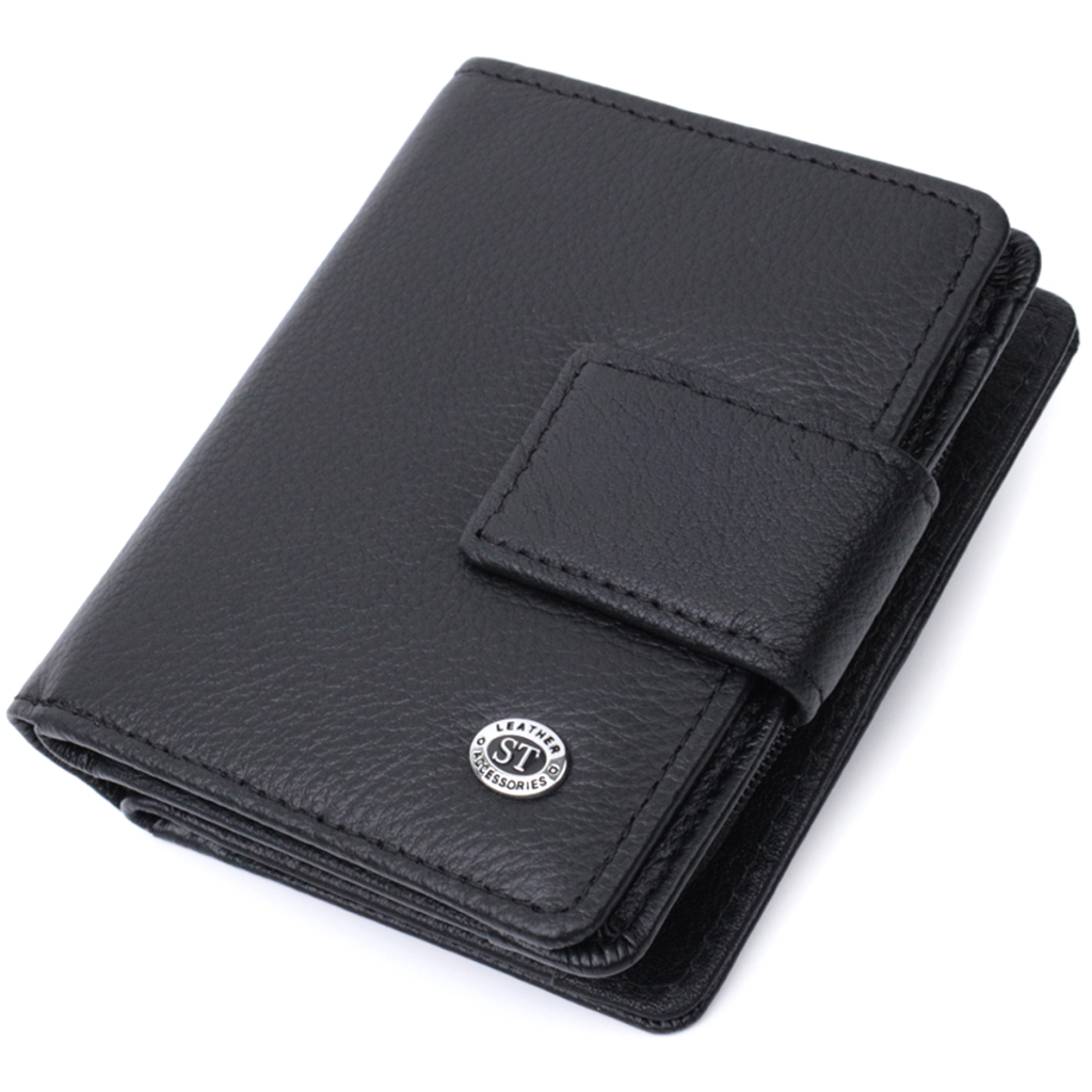 Гаманець ST Leather З монетницею та блоком для пропусків з натуральної шкіри Чорний (22713)