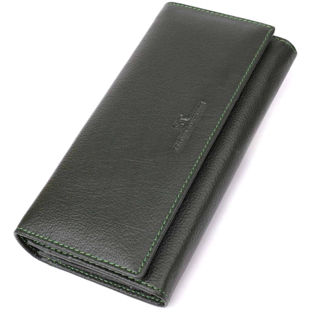 Гаманець ST Leather З натуральної шкіри Зелений (23066)