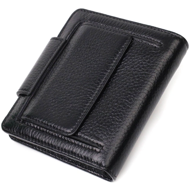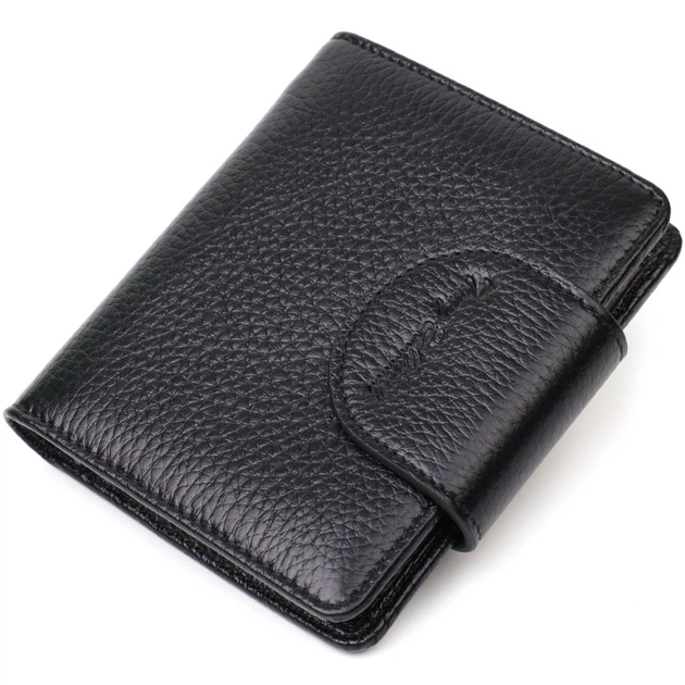Удобный вместительный женский кошелек из натуральной кожи. Аксессуар состоит из двух широких отделений для купюр, девяти ячеек для пластиковых карт, двух прилегающих карманов, кармана под сеточкой и монетницы под клапаном снаружи. В изделии использована качественная фурнитура золотистого цвета. Закрывается кошелек кожаным хлястиком на кнопку. Покупая этот кожаный кошелек, Вы не только приобретаете стильную вещь, но и получаете качественный аксессуар, который прослужит не один год.