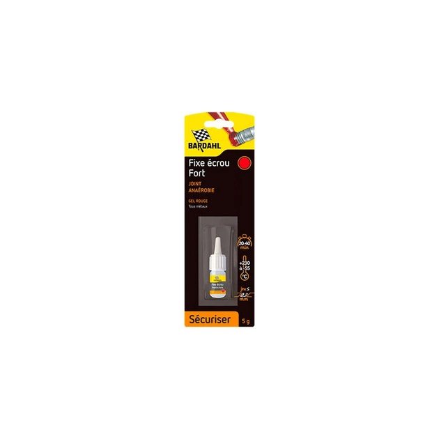 BARDAHL Fixe Ecrou Fort Rouge – анаэробный, герметик долгосрочный, предотвращает развинчивание любых резьбовых соединений. Заполняет внутреннюю часть резьбы. Может использоваться в узлах двигателей, трансмиссий и других узлов с повышенными нагрузками. Предотвращает утечку масла, воды, воздуха, защищает от коррозии. Термостойкость от -50 до +150°C
