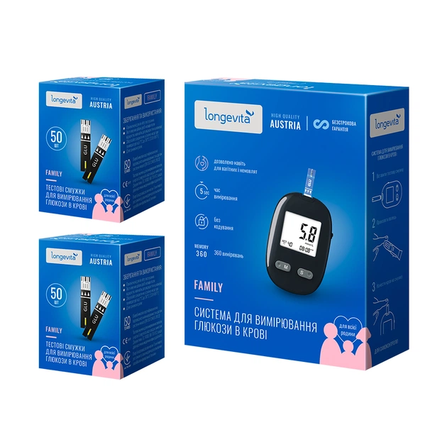 Глюкометр Longevita Family Система для измерения глюкозы в крови + тест полоски 2 х 50 шт. (6837149)