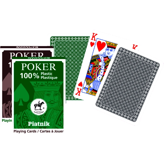 Игральные карты Пластиковые – стандартное бревно, которое можно использовать для любых карточных игр. Карты сделаны из высококачественного 100% пластика. Карты имеют гладкую поверхность и прекрасно скользят, гибки и долговечны. Рубашка может быть в сером или зеленом цвете. Размер карт стандартный, они идеально подходят для любых карточных игр. Бревно состоит из 52 основных карт, 2-х джокеров и промокарты.