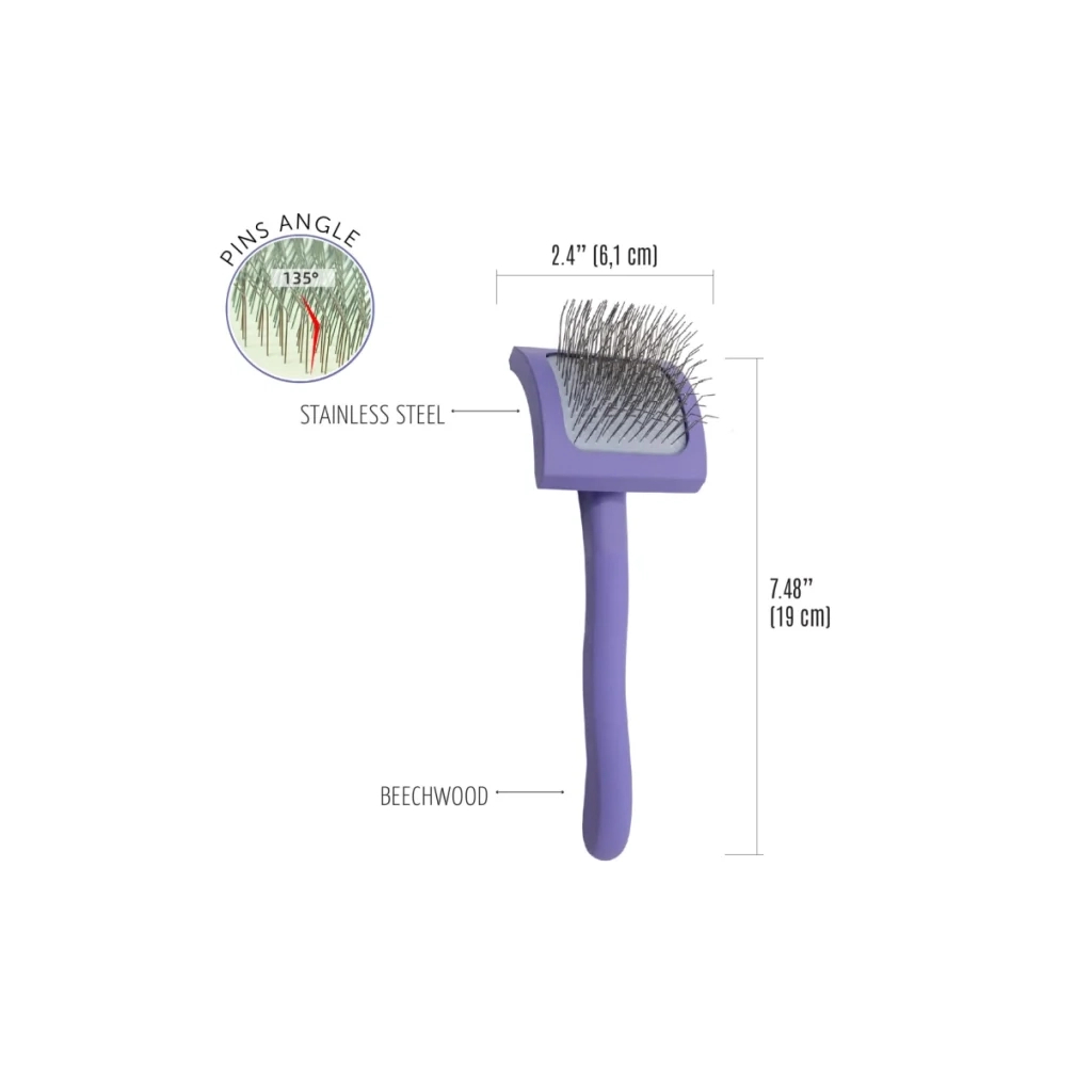 Гребінець для тварин Tauro Pro Line дерев'яна вигнута прямокутна, штифти 25 мм, фіолетова S (TPLB63650)