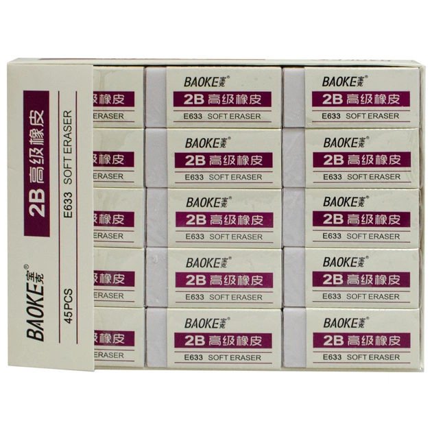 Гумка Baoke прямокутна 51 х 23 х 11 мм, TPR білий 2B, 45 шт (E633)